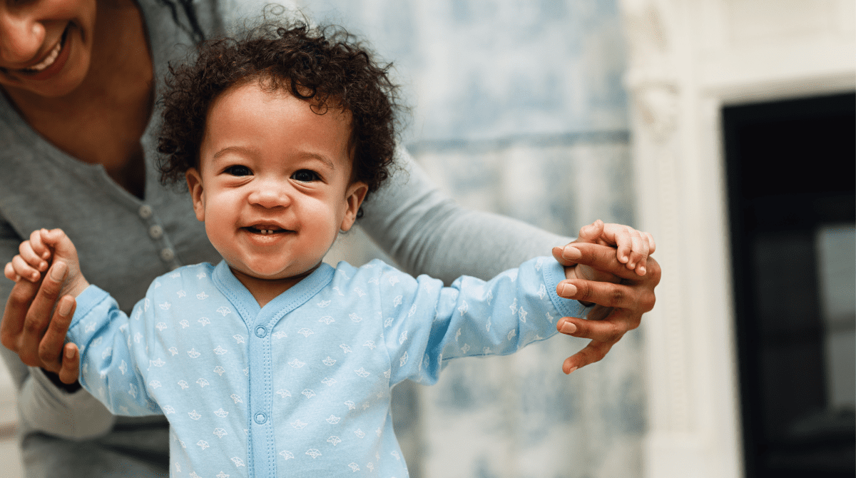 This sweet and active baby is entering an exciting stage of development—teething, eating solids, crawling, beginning to walk, and developing early communication skills.